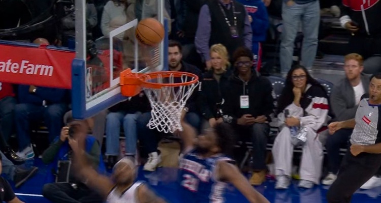 米兰体育官方-就差一点!布朗反击上篮被恩比德干扰球 掘金领先76人1分