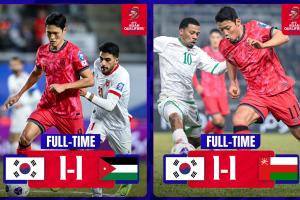 体育资讯03月25日讯 世预赛亚洲区第三阶段B组,韩国在主场连续遭遇阿曼和约旦1-1逼平,无缘提前晋级世界杯。