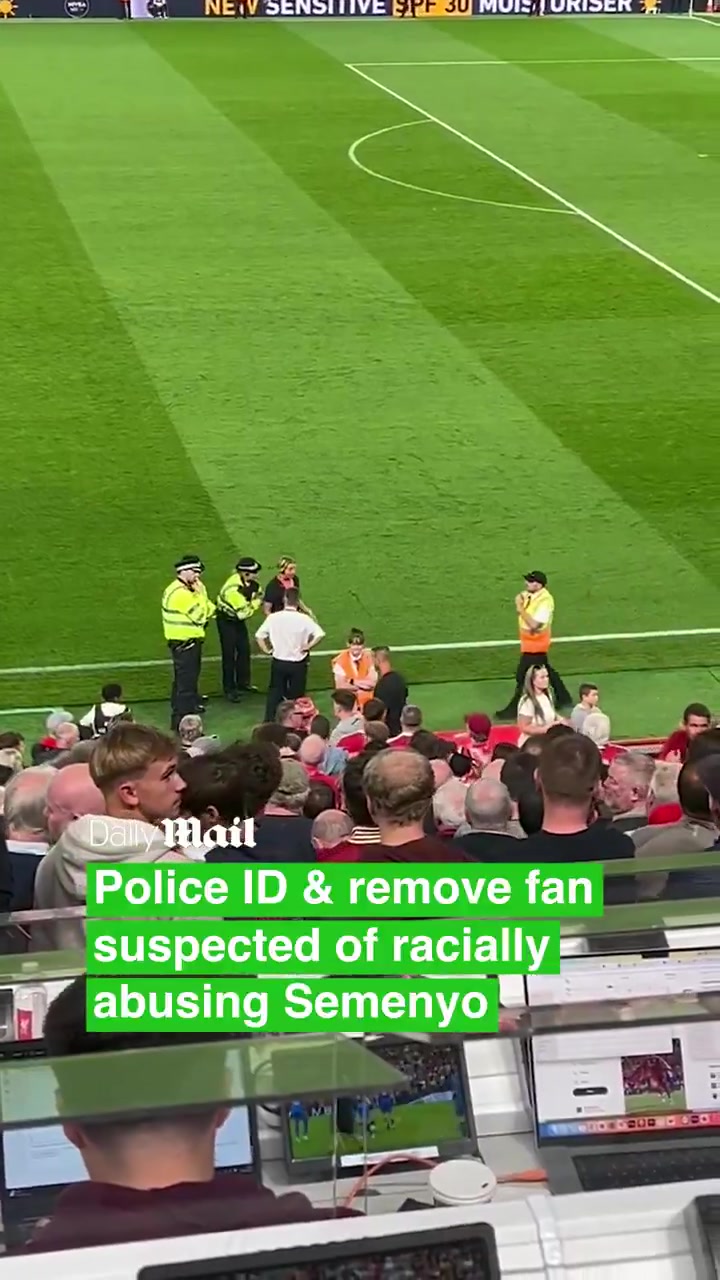 据报道,在利物浦vs伯恩茅斯的比赛中,伯恩茅斯前锋塞梅尼奥遭到种族歧视辱骂,随后这名球迷被驱逐出安菲尔德球场。